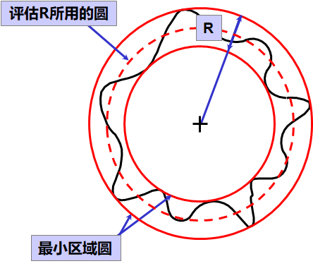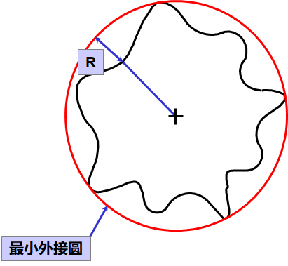 ? *小外接(MC)參考圓圓度值 (RONt) = R![]() 這也被稱為環規基準圓,是完全包圍輪廓線的*小圓。 圓度值(RONt)被量化為與*小外接圓的*大半徑偏差量。 同樣,*小外接圓的中心確定之后,圓度值的計算也是采用峰谷的半徑差值。 應當指出,將MI(*大內切圓)和MC(*小外接圓)疊加起來并不構成*小區域參考圓,因為它們的中心往往不是同心的。 ![]() |