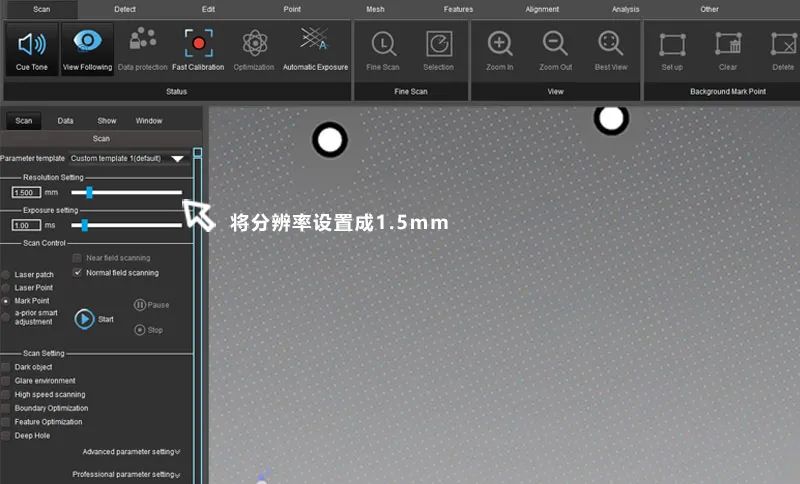 為了達到較好的掃描效果,還需要根據現場環境和被測物特性,提前調整掃描儀的參數設置。