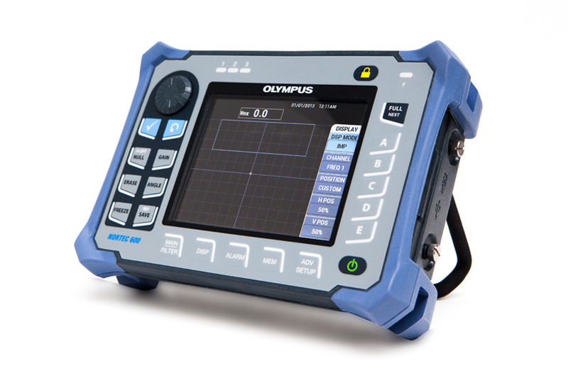 Olympus在這款袖珍便攜、堅固耐用的新型NORTEC 600渦流探傷儀器中匯集了高性能數字電路和渦流探傷方面的先進技術。NORTEC 600探傷儀帶有清晰明快的5.7英寸VGA顯示屏,并具有全屏模式,在多數光線條件下都可以呈現可見度很高、對比效果很好的渦流信號。