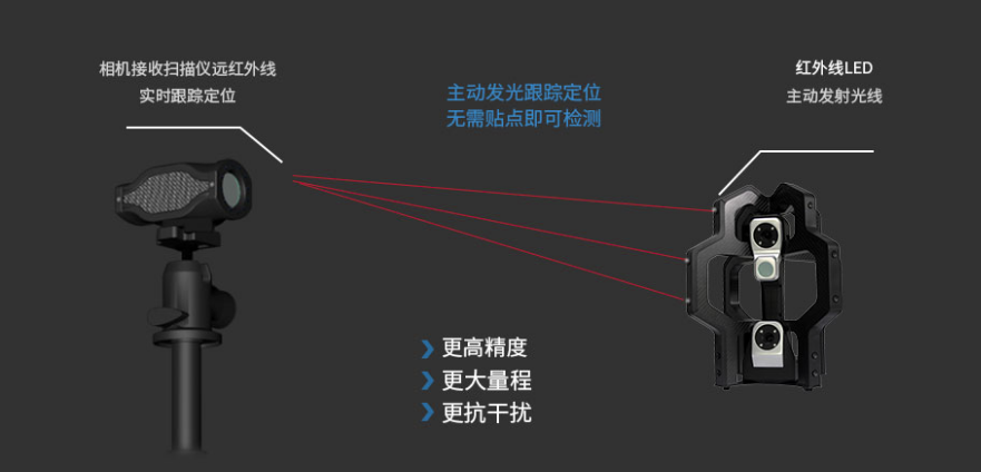 特別的跟蹤技術采用特別的LED光學跟蹤技術,無須貼點,主動尋靶技術使得AutoScan系統在到位精度、重復精度上具有強大優勢,大幅提升三維測量效率 |
