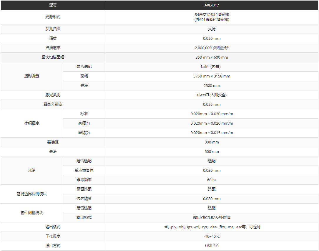 獨樹一幟 生而為強特殊的內置攝影測量系統,體積精度高達0.030 mm/m,專為中大型物體三維測量量身定做 |