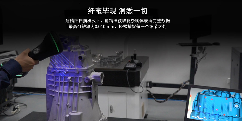 纖毫畢現 洞悉*切 精細掃描模式下,能精準獲取復雜物體表面完整數據,*高分辨率為0.010mm,輕松捕捉每一個細節之處 |