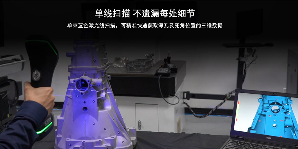 單線掃描 不遺漏每處細節 單束藍色激光線掃描,可精準快速獲取深孔及死角位置的三維數據 |