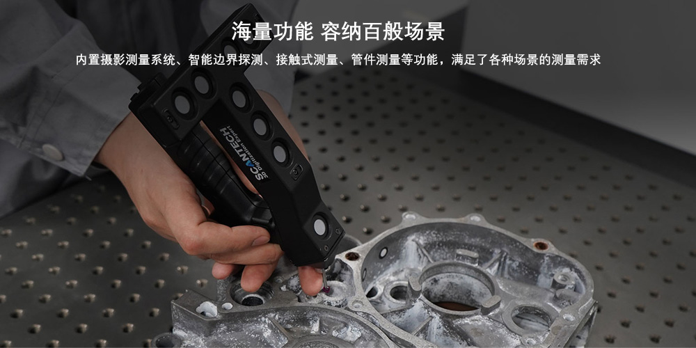 海量功能 容納百般場景 內置攝影測量系統、智能邊界探測、接觸式測量、管件測量等功能,滿足了各種場景的測量需求 |