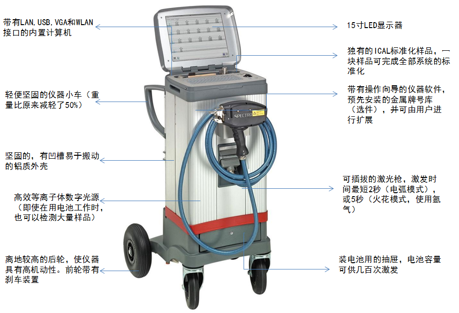 ?儀器采用高分辨率光學系統,適用于廣泛的元素范圍(包括氮、鋰和鈉)涵蓋現場金屬分析所需的所有元素。