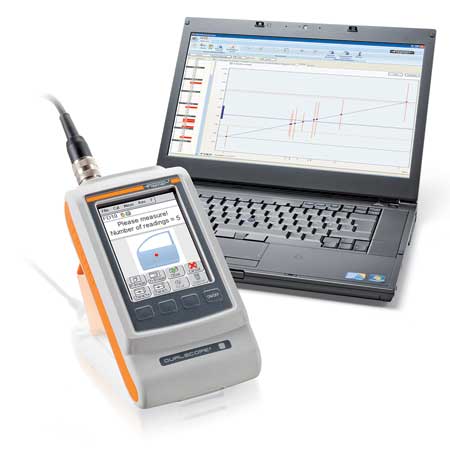 圖1:將FA100探頭連接到DUALSCOPE®FMP100時(shí)在管道段上的涂層厚度測(cè)量