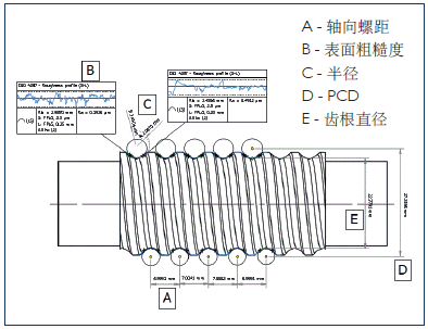 使用具有雙圓弧尖拱分析的 Metrology 4.0 軟件自動定位接觸點 鋼球配合雙圓弧的實測輪廓,可以顯示鋼球接觸點的準確位置,也可以確定螺距、半徑和PCD等參數。 |