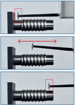 找正方法1:使用兩端軸部分找正 通過自動找正程序和高精度Y工作臺、旋轉工作臺確定滾珠絲杠兩端的頂點位置,并將它們旋轉到正確的角度,使零件與測量軸對齊。 |
