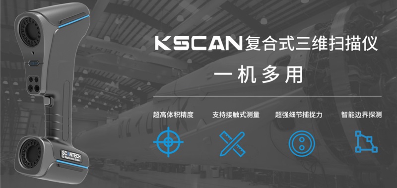 思看全新的KSCAN復合式三維掃描儀,擁有的紅藍雙色激光,藍光模式下0.01mm分辨率,可清晰獲取物體三維細節,0.02mm高精度快速獲取精準三維數據。