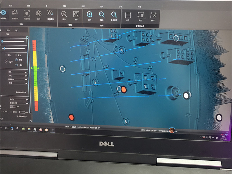 2. KSCAN藍光模式對鋁壓件正反面進行精細三維掃描,工作站實時顯示掃描結果;
