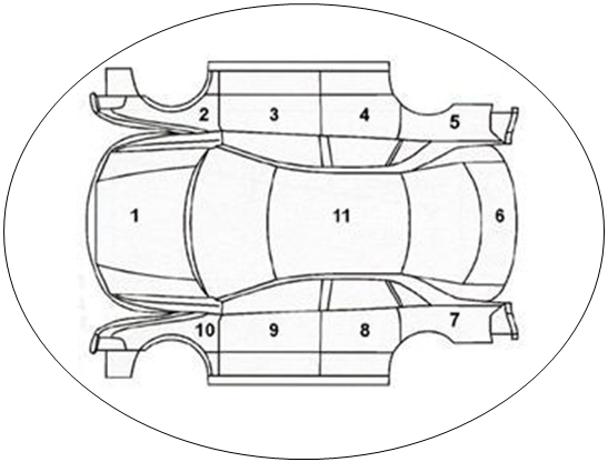 具有測量點的車身表面簡化展開